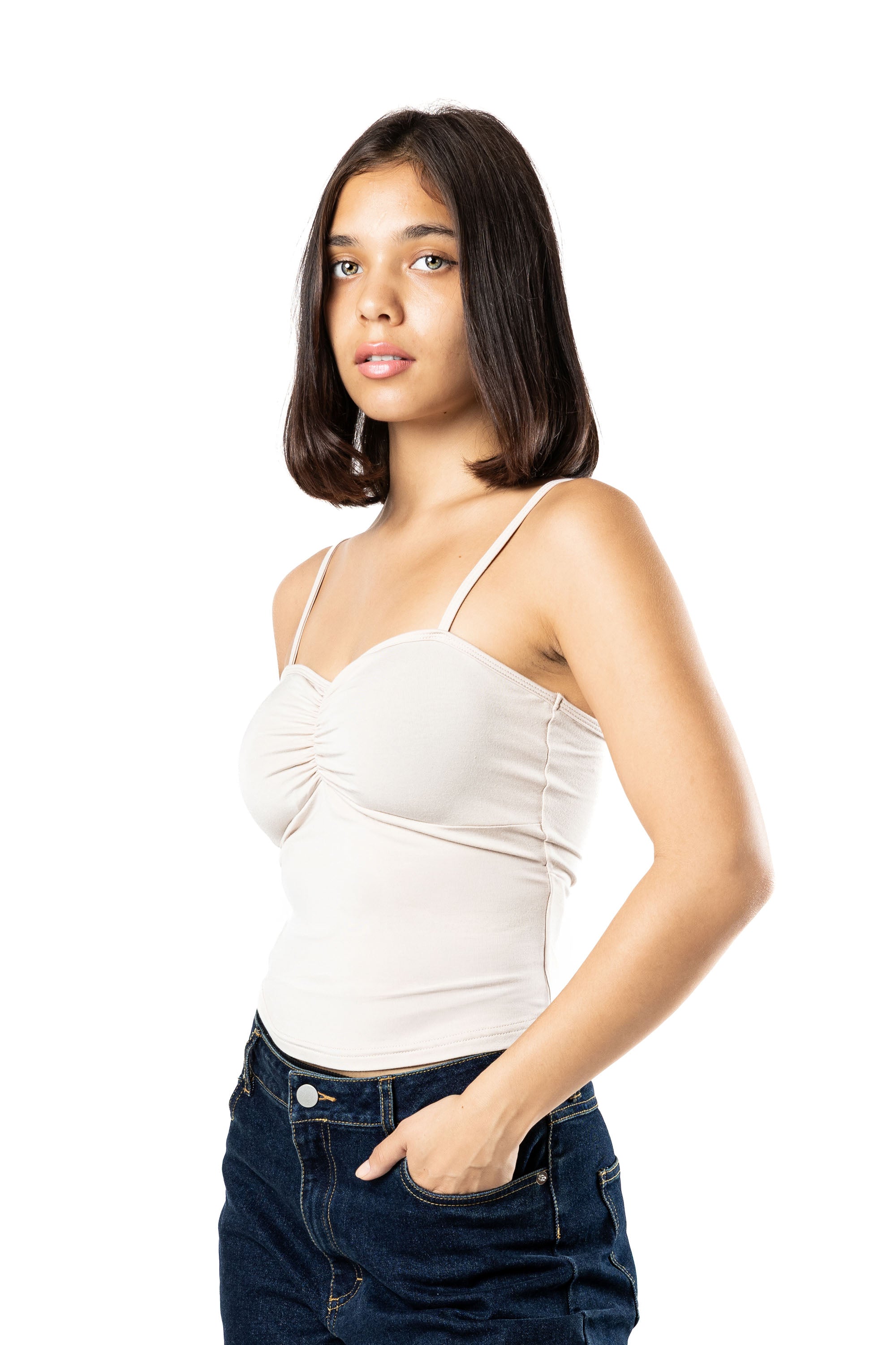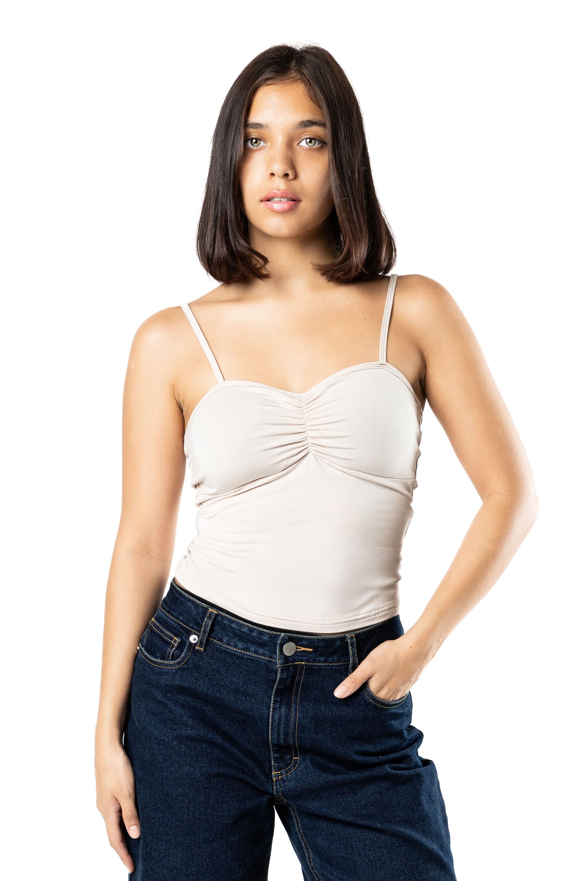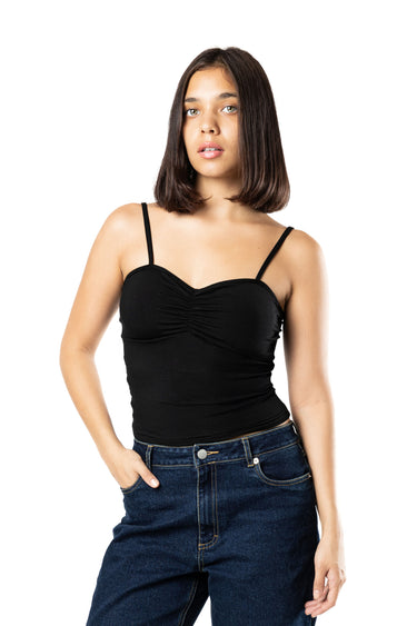The Flair Ruched Cami Top is the ultimate mix of minimal design and effortless