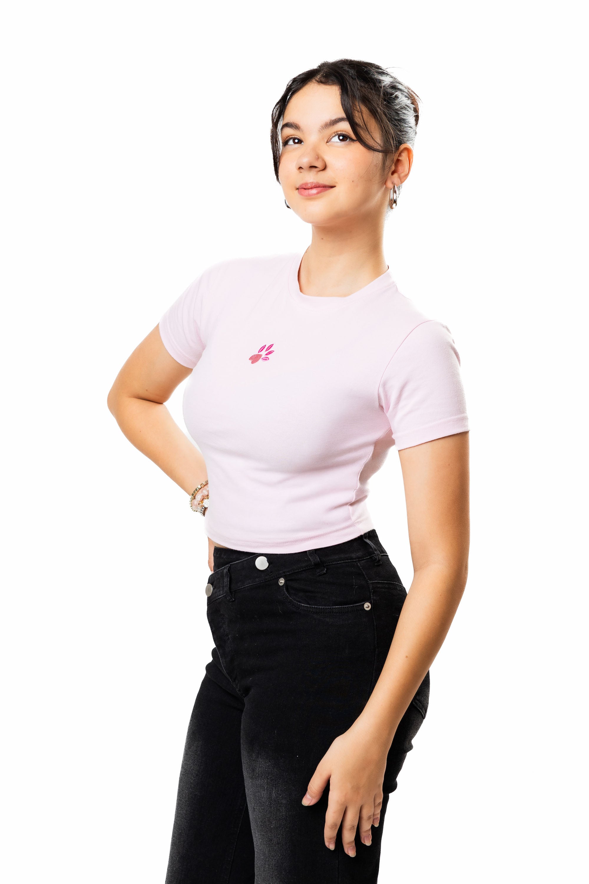 Playful, chic, and irresistibly cute the Kitty Charm Crop Tee is your go to piece for that