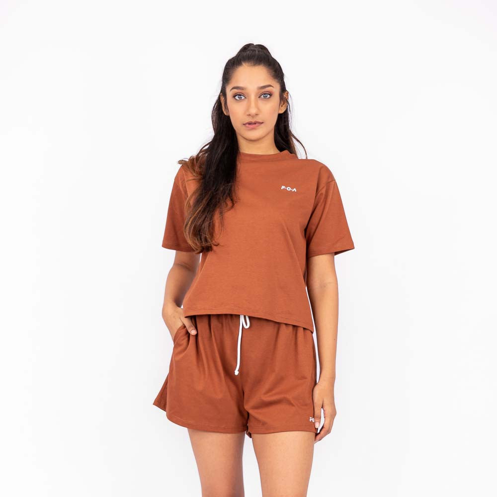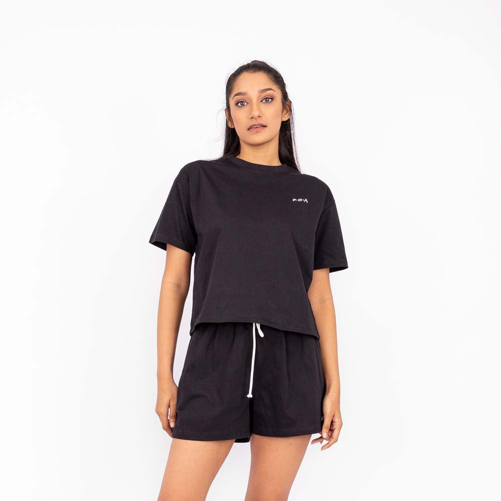 They have a deep gathered waistband and F.O.A embossed logo on front.