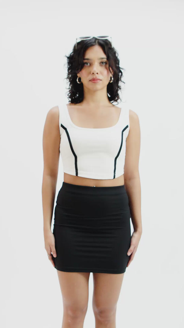 Make a statement with this sporty-chic essential. Combining a structured, corset-inspired silhouette with bold contrast detailing, this tank is designed to accentuate your natural curves while offering a modern, athletic edge.