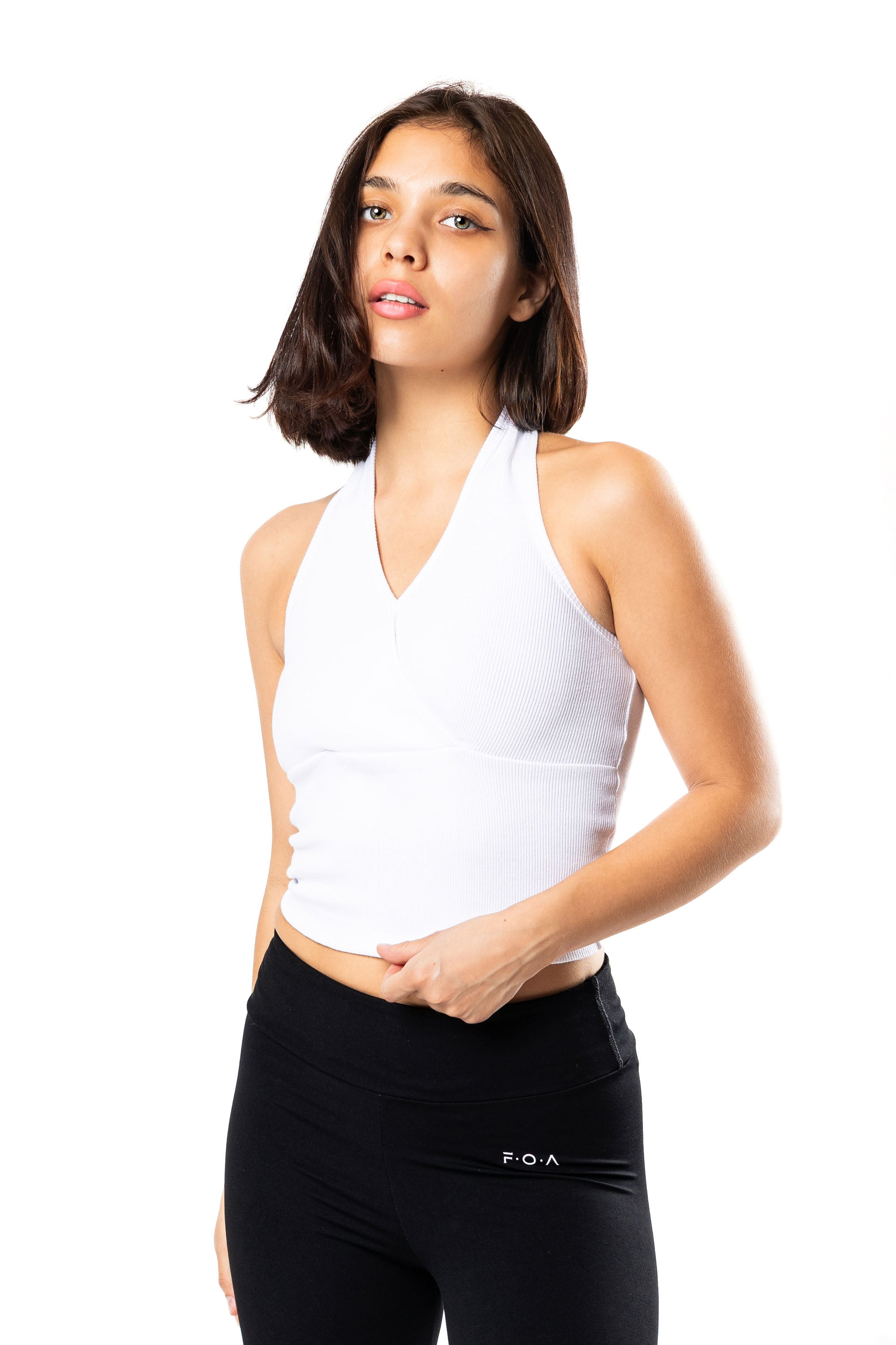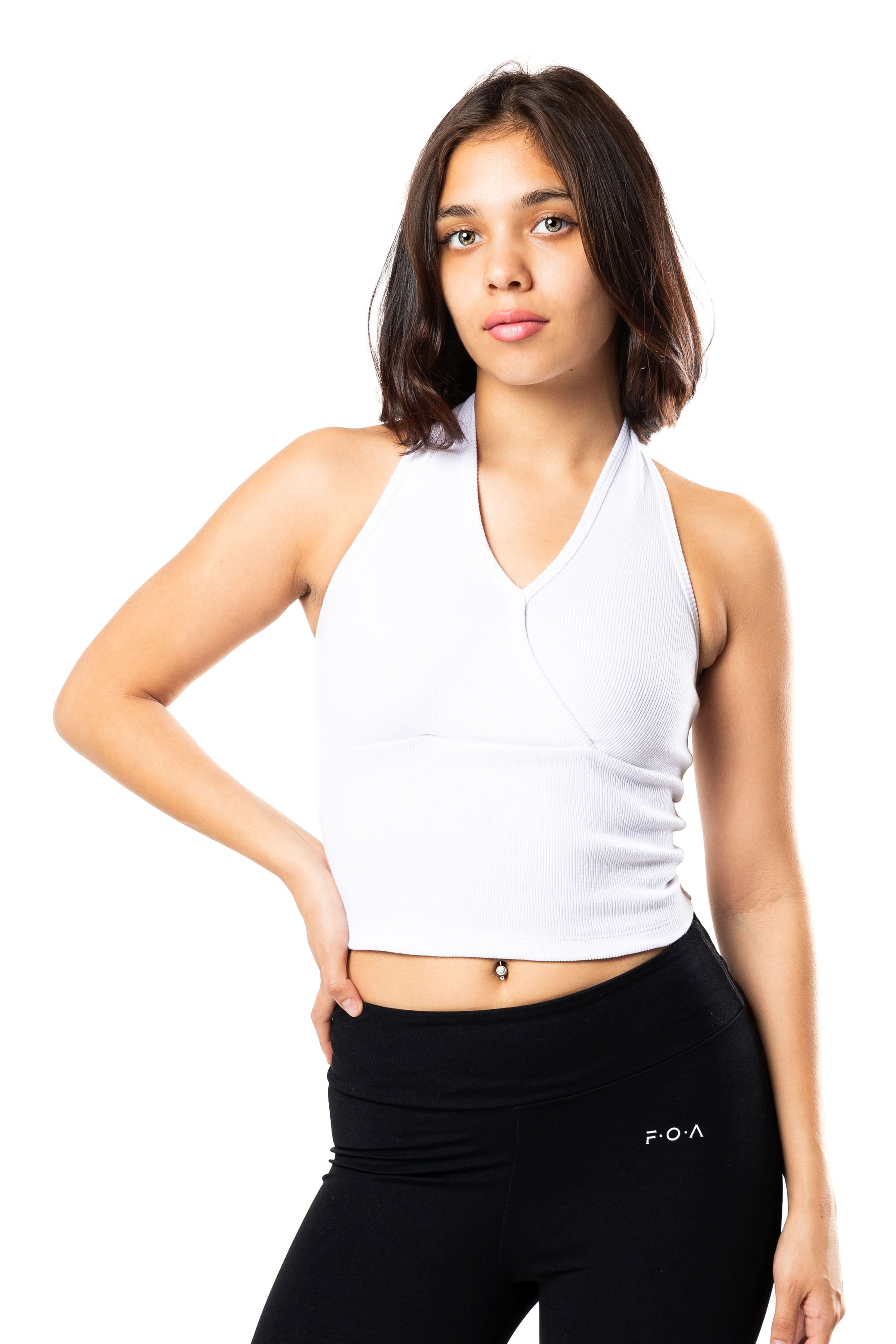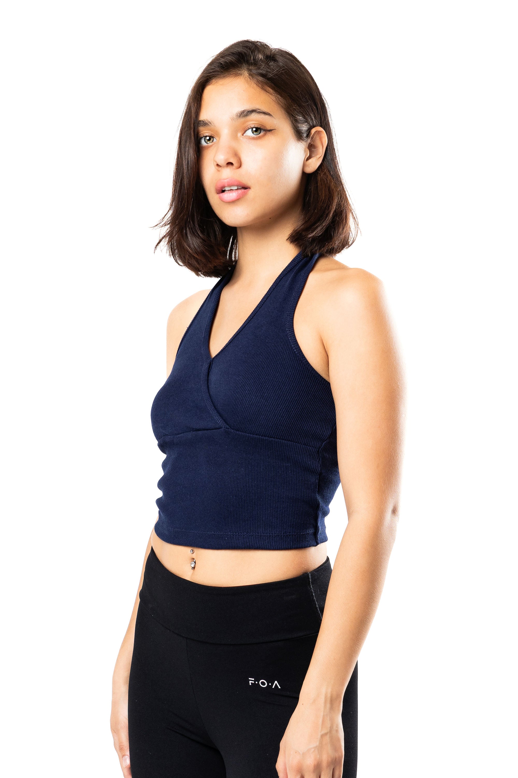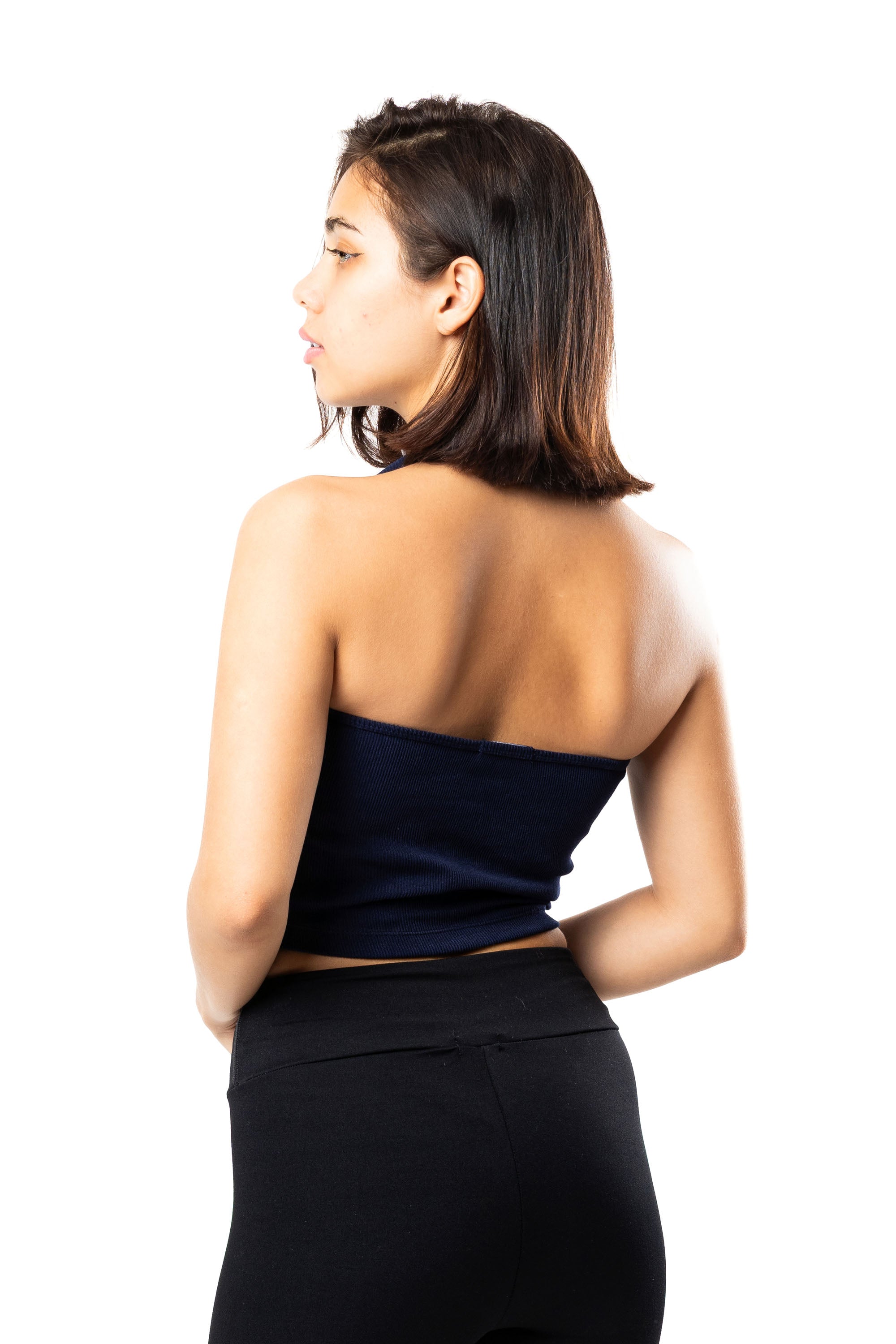 and adjustable halter straps, this cropped silhouette accentuates your figure while